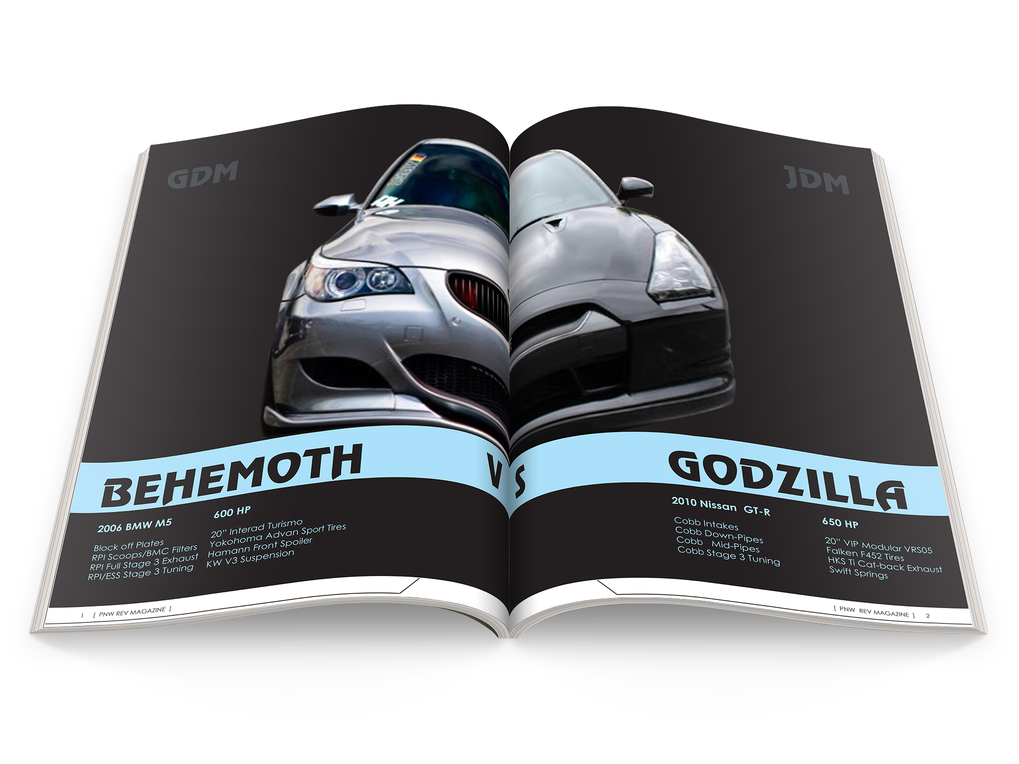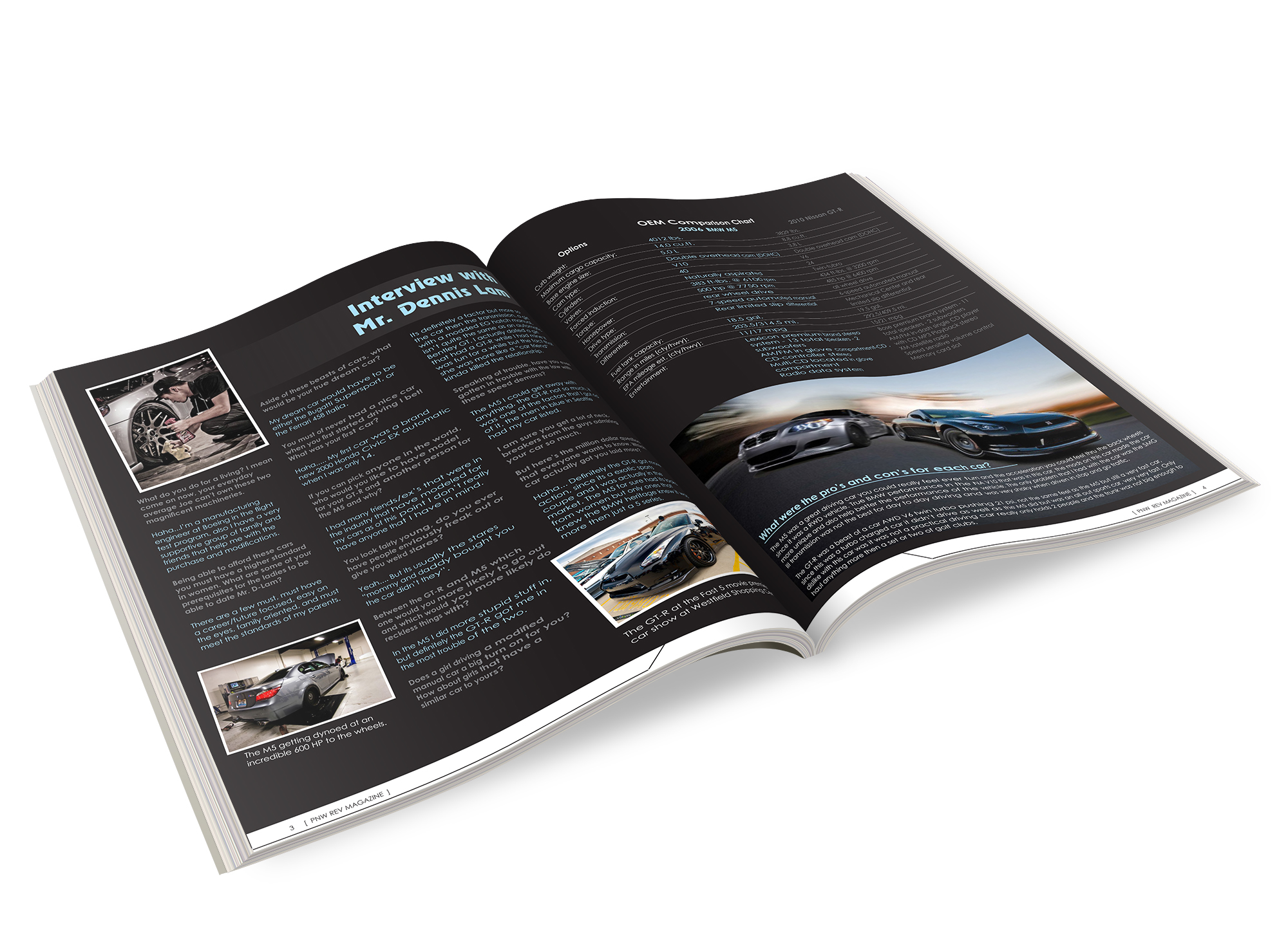 Although the magazine client was fictional, the content and interview were not. I had the chance to interview Dennis Lam, who previously owned both a 2006 BMW M5 and 2010 Nissan GT-R both which were beautifully modified and aggressively tuned.